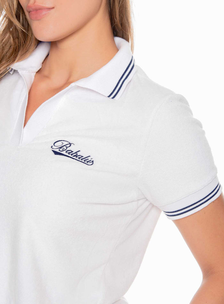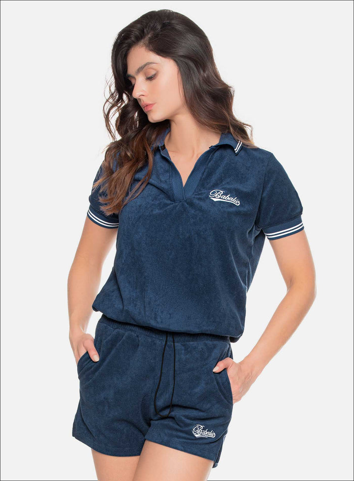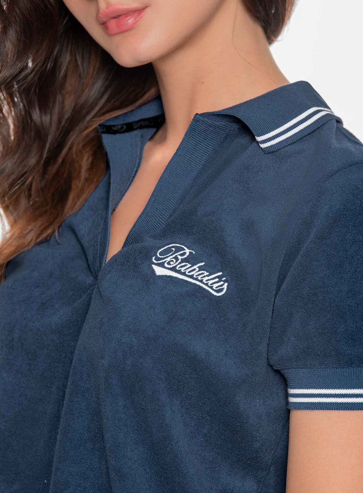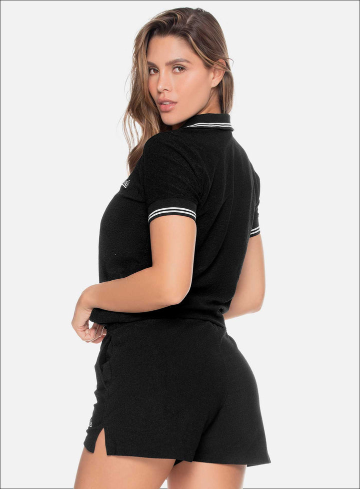 - Camiseta tipo polo, cuellos, puños y perilla tejidos.