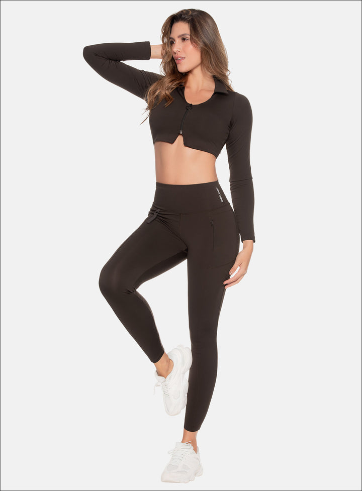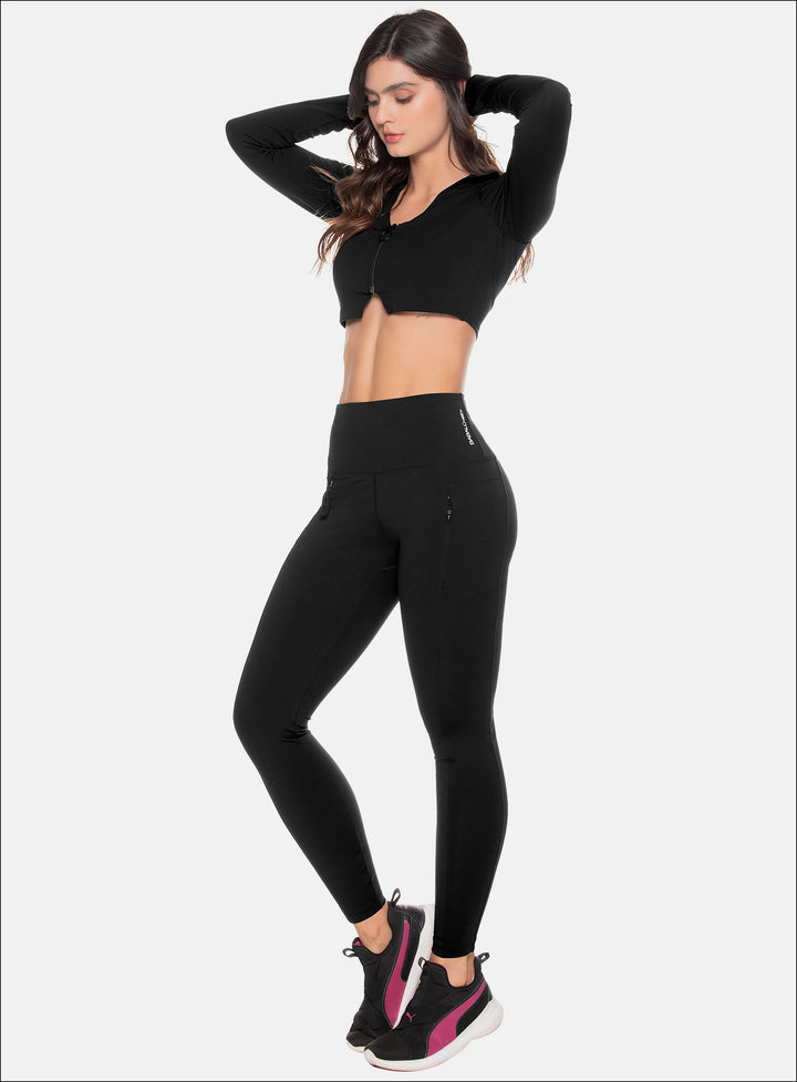 - Leggins deportivo con cortes en pierna delantera y bolsillo funcional con cierre invisible.