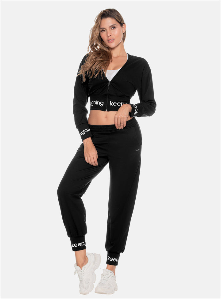- Jogger deportivo con botas estampadas, bolsillos funcionales en costados.